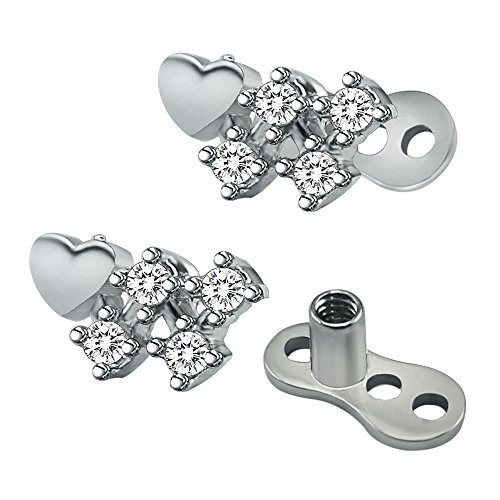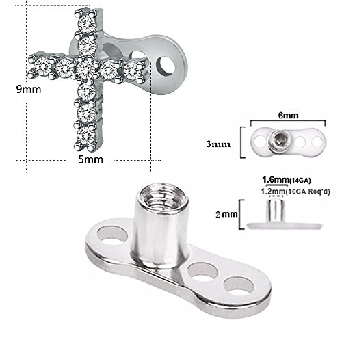 -. Feature : Materials: Made with 316L Surgical Stainless Steel and AAA Cubic Zirconia,eco-friendly metal / Gauge: 1.2 mm(16g) Internally Threaded for 14 gauge anchors, Length : 2mm, Cubic Zirconia Size: 5-9mm / Available Style: Snowflake,Four-leaf clover,Fan, Flower,Star,Triangle,V shape,Trinity zircon, Hollow heart ,V-shape,Heart,Bar-type,Cross(Choose your style you love) / Can be worn in a variety of pierced places - Suitable for Lip, Labret,Necks ,Backs, Cheek,Anti-eyebrow,Chest ,Arm,Monroe piercing or any body part / You will receive 1 pairs stainless steel dermal anchor (exactly as picture shown )