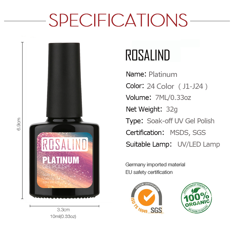 ROSALIND 10ml J01-24 Nail Polish Shimmer Nail Art Platinum Gel Polish UV Nail Gel Varnish Long Lasting Gel-Lacquer
