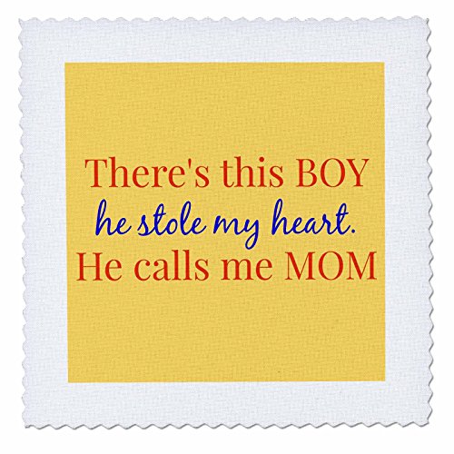 3dRose Theres This Boy, He Stole My Heart, He Calls Me Mom, Yellow Background - Quilt Square, 6 by 6-Inch (qs_224382_2)