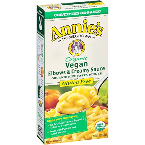 Annie's Organic Vegan Macaroni and Cheese, Elbows & Creamy Sauce, Gluten Free Pasta, 6 oz Box (Pack of 12)