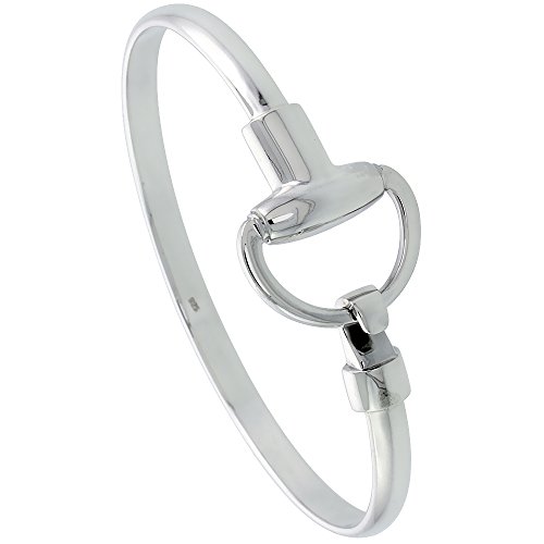 The quality of this piece of jewelry is absolutely perfect. It's hand-polished, with no plating to hide any imperfection, and it's Nickel-free. This magnificent sterling silver bracelet measures 7/8"" (22mm) wide. It is polished-finish, with a Dee Ring Snaffle Bit which is adequately fashioned for horse lovers. The horse bit is also utilized as a clasp to secure the bangle. The bangle fits an average woman's wrist.Feature