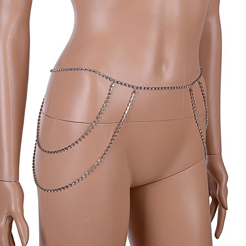 Womens Rhinestone Body Jewelry Chain Sexy Multi-layer Bikini Belly Waist Chain