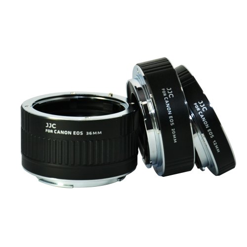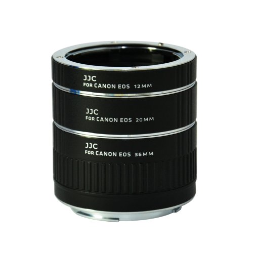 Studio : Jinjiacheng Photography Equipment Co.,Ltd. Publisher : Jinjiacheng Photography Equipment Co.,Ltd. Binding : Camera Product Description JJC Automatic Extension Tube for Canon EOS allows your lens to focus closer than its normal minimum focus distance.By placing distance between your camera body and lens,focusing distance is shortened and the effect of magnifying your subject is created. Extension tubes are thus commonly used for macro photography and sometimes for closeup portraits.JJC Automatic Extension Tubes are available as a set (12mm,20mm and 36mm), also can be used individually or together to create the desired magnification effect. These tubes are fully automatic tubes,so they are able to communicate all electronic functions from lens to camera including auto focus and auto exposure. Extension tubes have no optical elements so they will not degrade the quality of your lenses. Package Including:1X AET-CS Set (12mm, 20mm and 36mm adapter tube) Compatible with CANON EF or EFs Lenses and CANON EOS body 0