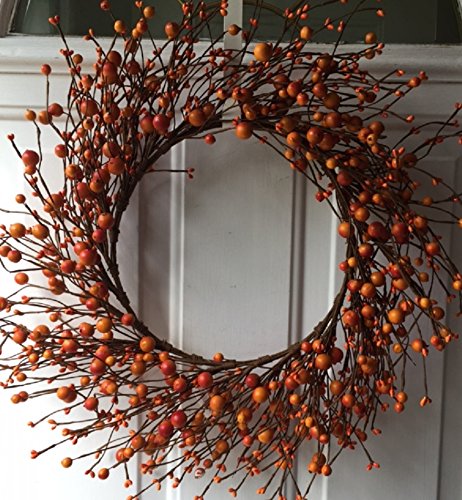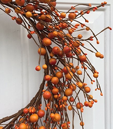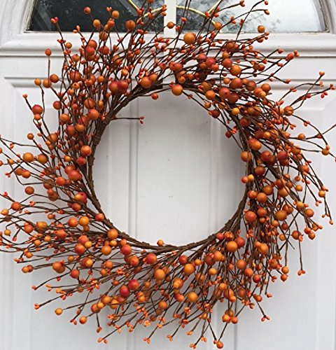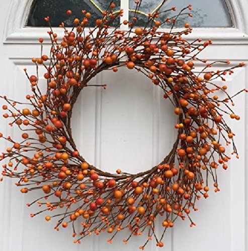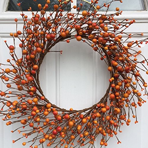 AUTUMN DECOR Handmade orange berries, this decorative wreath brings the beauty of fall color indoors when hung in a kitchen, living room, or above a fireplace.