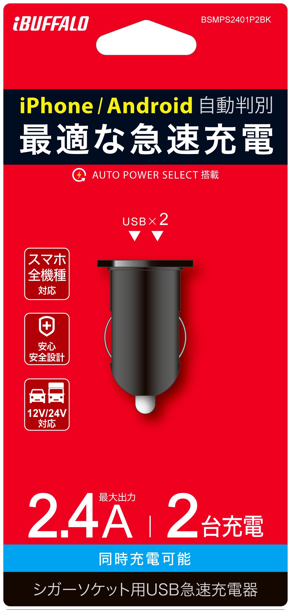 ● Automatic rapid charge of iPhone / Android with AutoPowerSelect function ● Safe and safe design to protect smartphone and this product ● 2 smartphones / tablets simultaneously with high output of maximum output 2.4 A Quick charge from car cigarette lighter