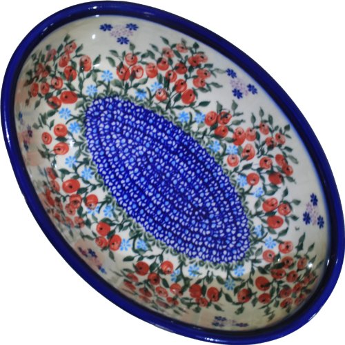 Polish Pottery Ceramika Boleslawiec 1210/282 Royal Blue Patterns 5-Cup Oval Mirek Baker, 9-2/3 by 6-7/10-Inch, Red Berries and Daisies