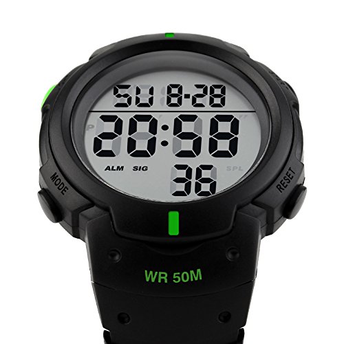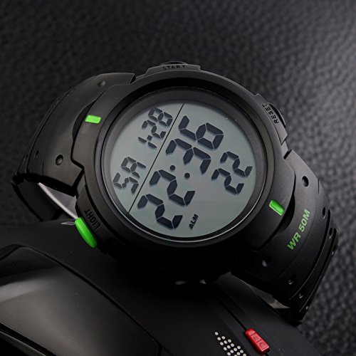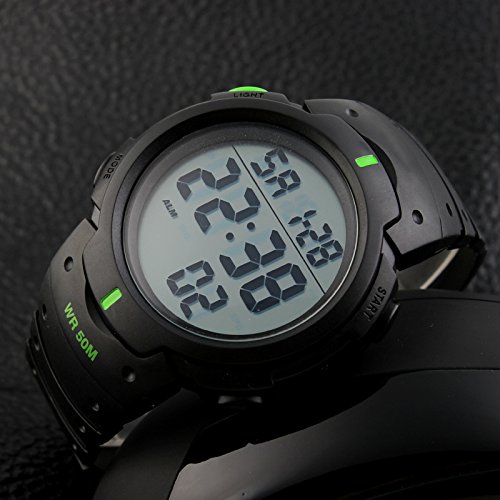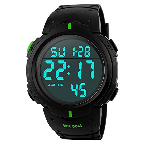 TTLIFE 유니섹스 LED워치 남성 스포츠 워치 손목시계 맨즈 디지털 아웃도어 손목시계 방수 50M 자명종 캘린더 그린