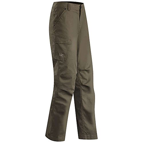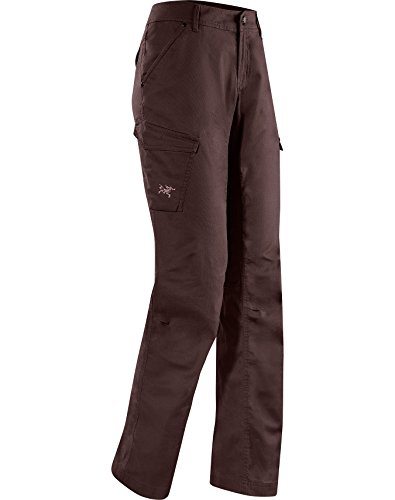 FEATURES of the Arcteryx Women's Cayley Pant Natural fibre with comfort stretch and teXtured surface Articulated knees, gusseted crotch for comfort and mobility Two hand pockets, two back pockets with flap and stitch through detail, two side cargo pockets with flaps and bellows Embroidered Bird logoFeature