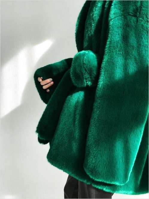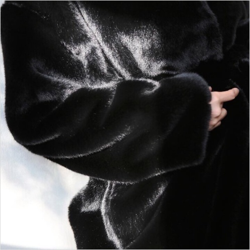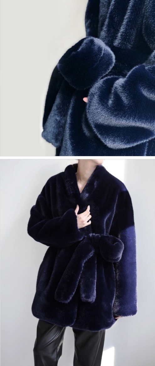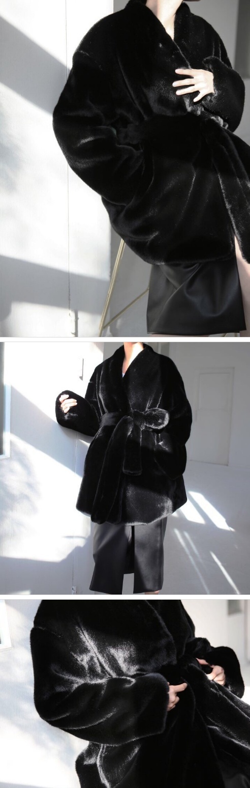 Women`s Loose Fitting Faux Mink Fur Coat Self Tie Coat Black Navy Gray Green