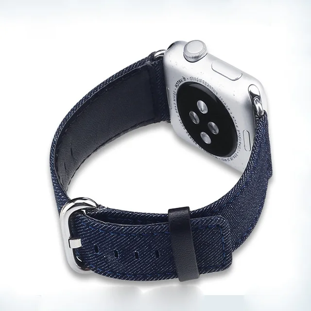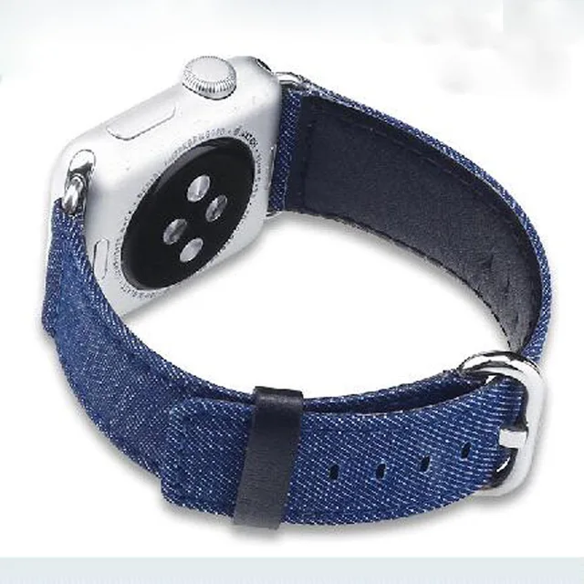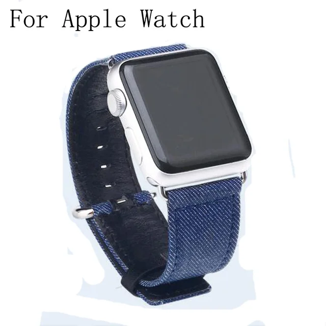 | [해외]특별한 디자인 블루 카우보이 캔버스 가죽 correas 팔찌 apple watch 스트랩 42 미리메터 38 미리메터 대한 iwatch adpter 함께 컨테이너 |