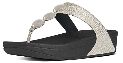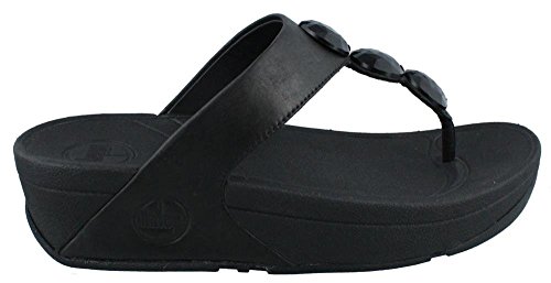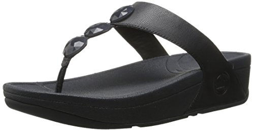 Women's FitFlop?, Petra? Leather Thong Sandals Simple yet pretty, these sandals are perfect for anything in your wardrobe! Leather upper with jewel accents for added appeal Thong style sandal for an easy slip on and off Smooth leather and manmade lining Triple density Microwobbleboard? midsole delivers comfort by helping absorb shock and diffusing underfoot pressure by instantly increasing the contact area of the foot to the midsole 2 inch wedge heel with a 1 inch platform with a rubber outsole. Heel Height of 2.00 inchesFeature