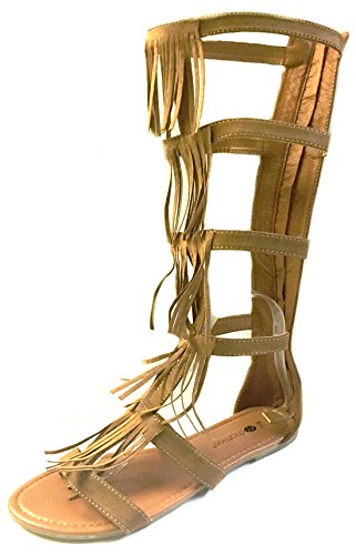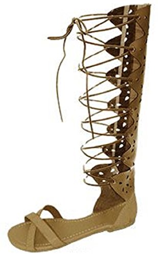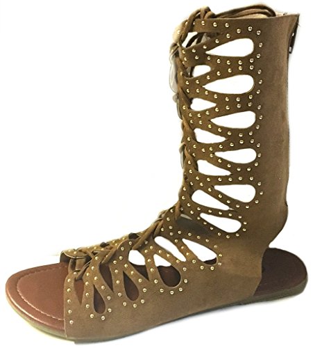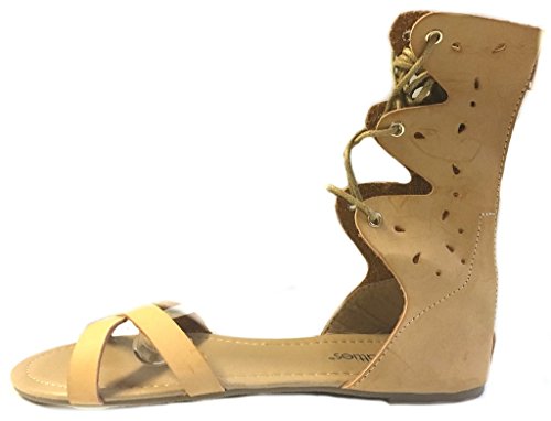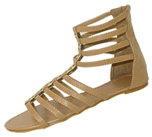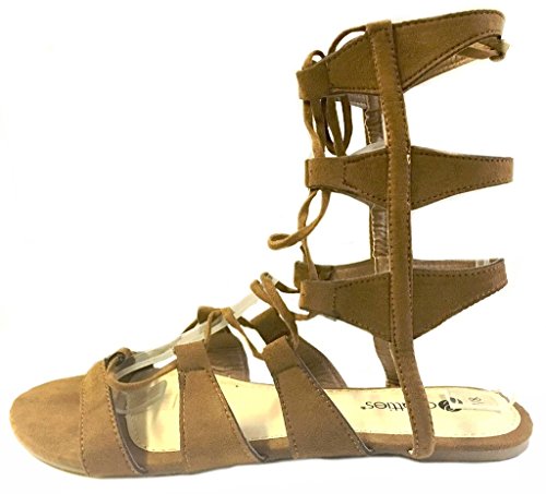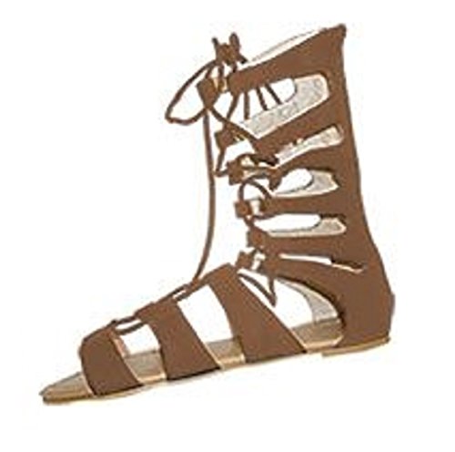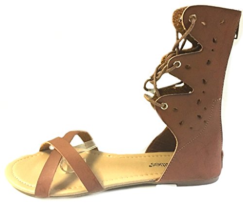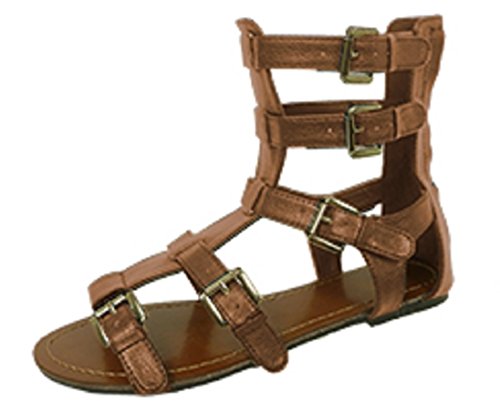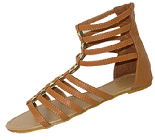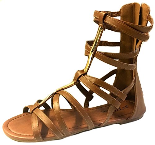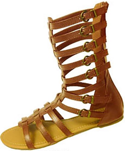 Womens 10' Gladiator Sandals Flats W/Multi Buckle Straps (9/10, Cognac 6361)
