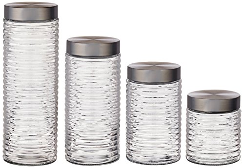 4 Piece Glass Textured Canister Set