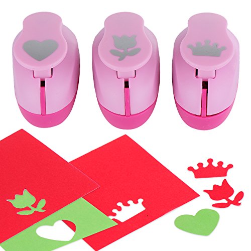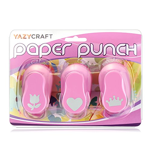 -. Feature : What's inside -- 3 pieces of fantastic decorative punchers for handmade paper crafts / Use -- Perfect for punched out images to decorate cards, envelopes, kids artwork, scrapbook pages, photo frames décor, origami, gift wrap, decorations, embellishments and more / Size -- 2.16 x 2.95 x 1.77 inches / X-factor -- Ergonomic handle, fast and easy to punch out shapes / More options:Yazycraft offers variety of shapes such as circle, leaf, retro flower, apple, palm tree, flowers, sun, butterfly, angel, heart, flower, crown, bear, star, ribbon, musical note, snow flake, happy face