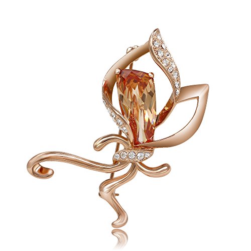 Featuring flower design, crafted in gold plated alloy and studded with clear crystals and orange cubic zirconia to lighten it up, this flower brooch is a beautiful decoration to any outfit.