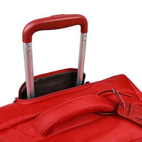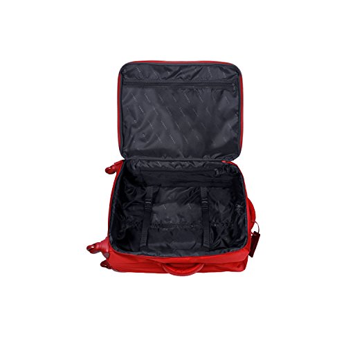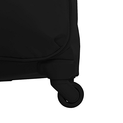 Product Description Fast turns. Sharp curves. Speed bumps. Go anywhere and in any direction with this spin-savvy case. Its four wheels turn 360?Four wheel spinner wheel system for maximum functionality?Vibrant Fashion colors?Durable and water resistant PVC reinforced Nylon?3 Year GuaranteeWeight: 5.8 lbs.Body Dimensions: 23.6" x 16.0" x 9.4"Overall Dimensions: 25.6" x 17.0" x 11.0" Nylon - Durable Nylon fabric.PVC material - Is a flexible, waterproof rubber-like plastic. PVC backing is laminated to polyester to make it highly moisture resistant. 0