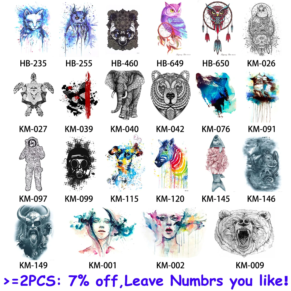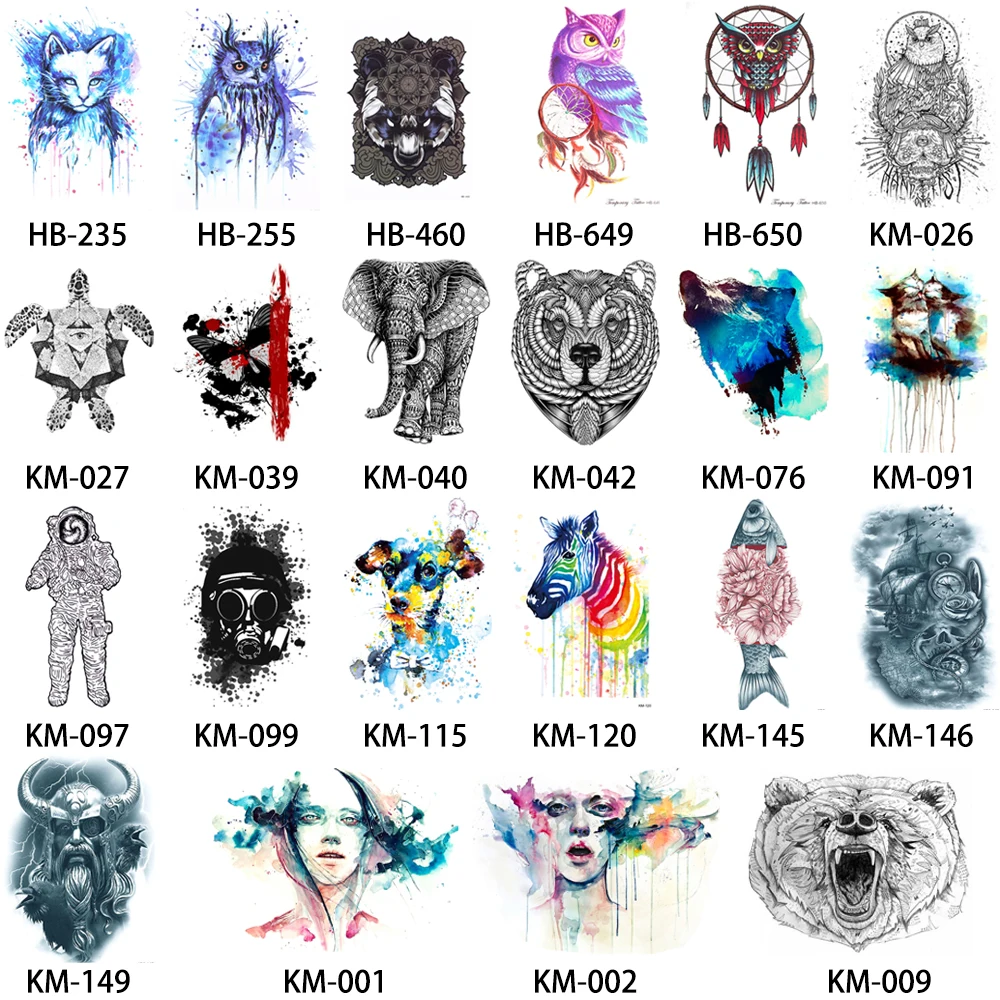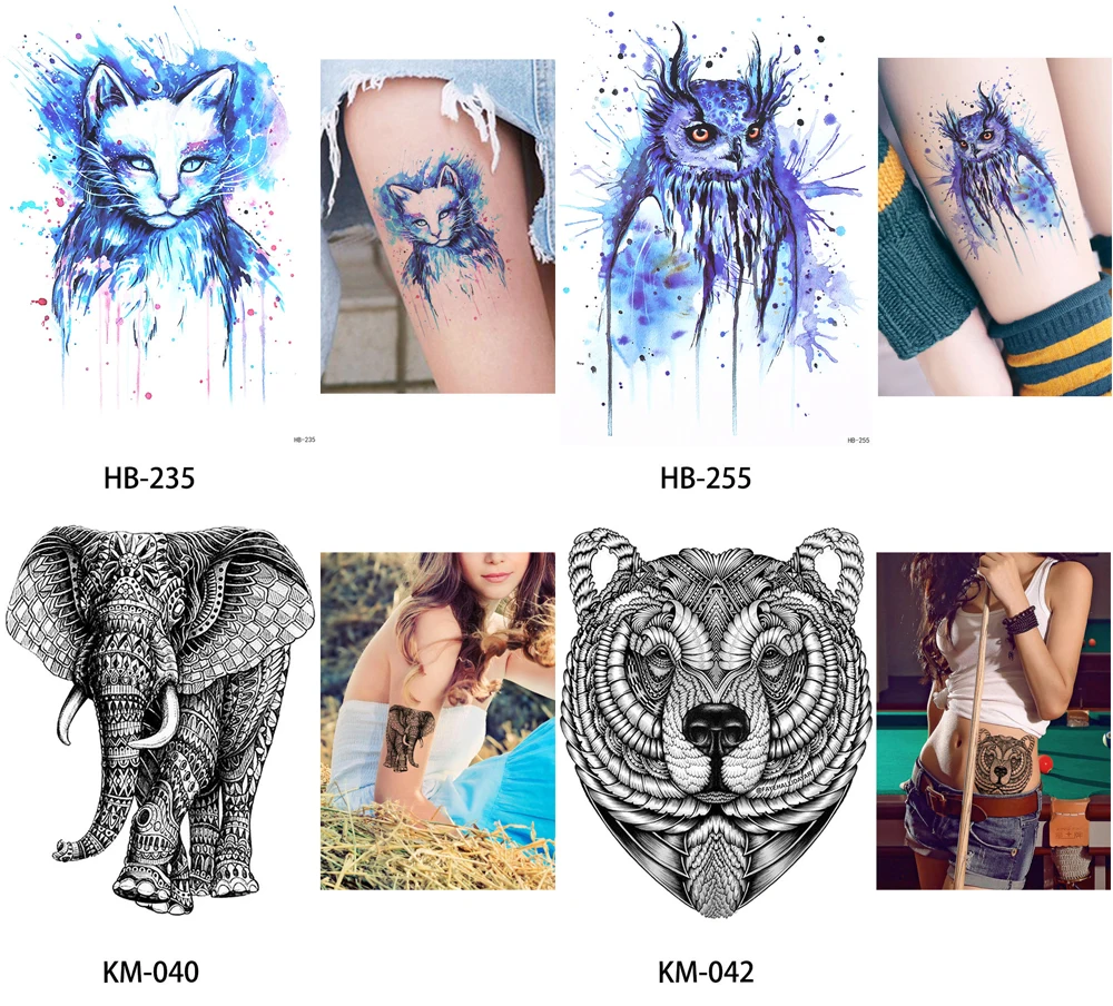 Temporary Tattoo Shape:Cat / Owl / Bear / Elephant / Wolf / Fish / Ancient Greek / Cat Lover