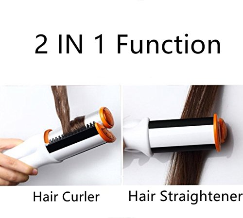AUTOMATIC 2 IN 1 HAIR BRUSH STRAIGHTENER AND CURLER AIR HAIR BRUSH, INSTANT HEAT HAIR IRONING 1.38"/35MM WHITE