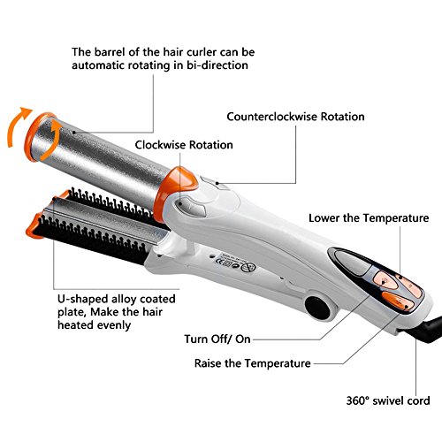 • Easy to Use: LED digital constant temperature control, multiple heat settings up from 450? to 750?; Featuring with innovative automated bi-directional rotating control, and a clear LCD display, you can style your hair with the touch of a button. Please note that the barrel can rotate only if you press down the barrel first, to touch the bottom plate.