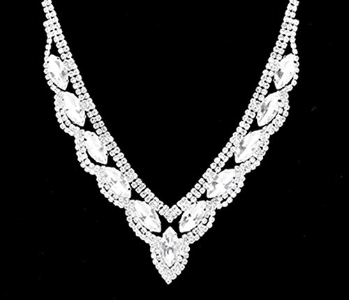 16 inch V shaped marquis cut rhinestone bib necklace in silver-tone.