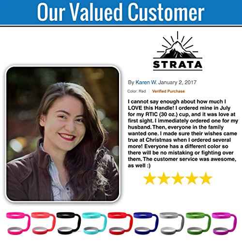 Unlike competitors', the STRATA handle was specifically designed so that the lower ring always fits snuggly and properly. As avid tumbler users, we know what makes for a superior tumbler handle. We understand what customers really need to enjoy their drinks on the go. That is why this tumbler was designed with tight fitting, no-slip top and bottom rings to keep your coffee or tea secure while you sip. That is what sets this handle apart from the others, and why we got into the handle business in the first place...to create unparalleled quality.