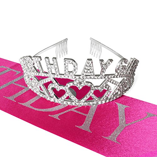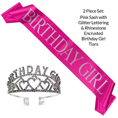 Birthday Girl Glitter Tiara and Pink "Birthday Girl" Sash