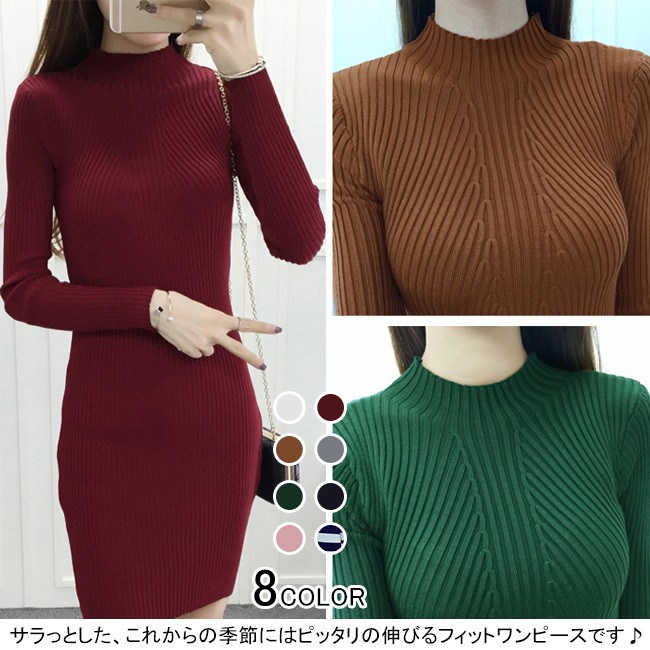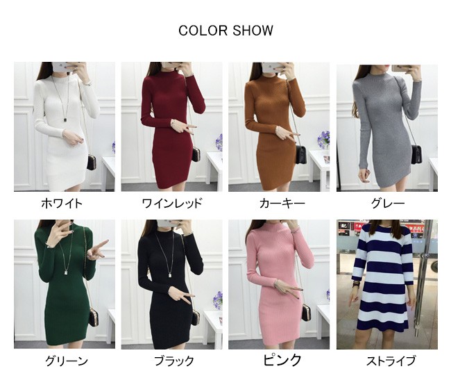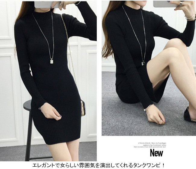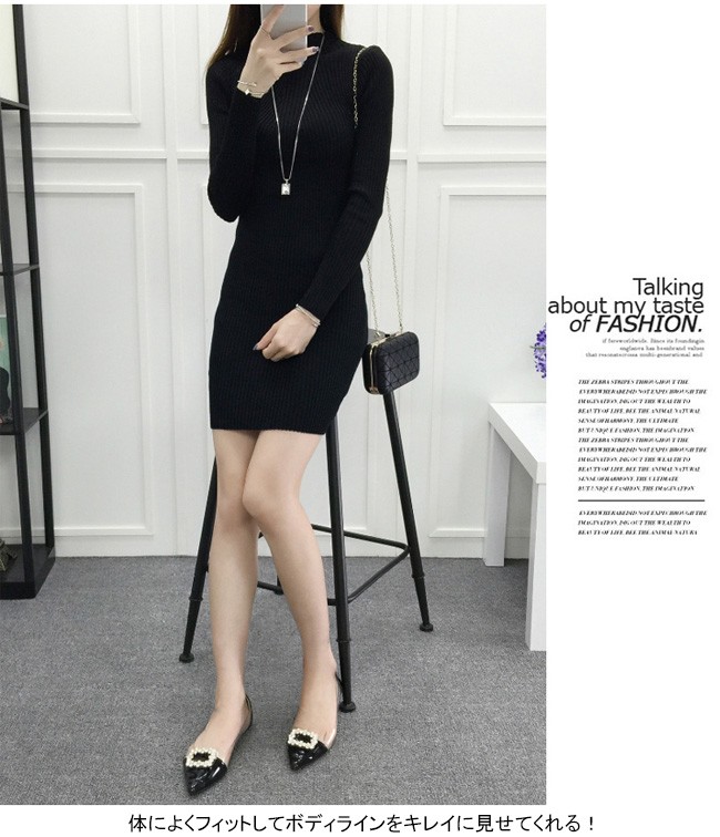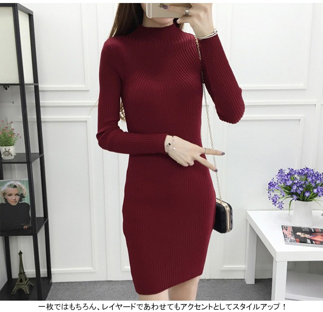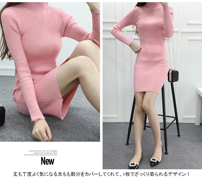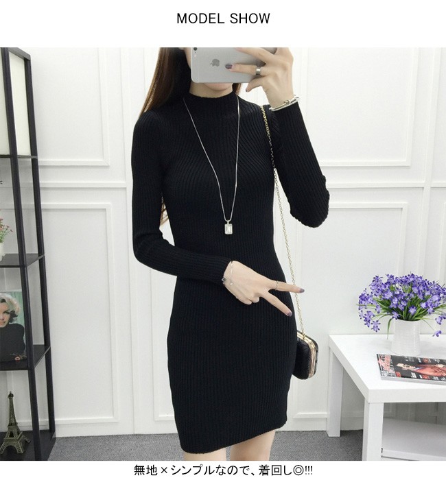 | 商品名 | ニットワンピース インナーワンピース タイトワンピース レディース 無地 ショートワンピース 長袖 ハーフタートルネック 通勤 2017秋新作 |