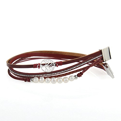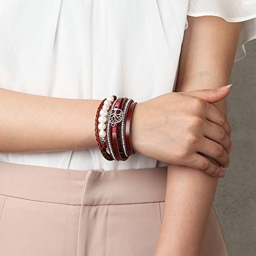 Features: Material: real leather,alloy,magnet,simulate pearl Unique Desing: fashion,casual,pretty,vintage,beautiful Gift: leather bracelet for women,girl,friend,mother,wife,designer,family,younger people, etc Occasion: party,birthday,anniversary,vacation... Workmanship: silver plated Clasp Type: magnetic clasp Pattern: pearl,tree of life Size: length is 39CM,width is 1.6CM Packet Include: 1*women leather bracelet 1*gift bags Let you show fashion and elegant style