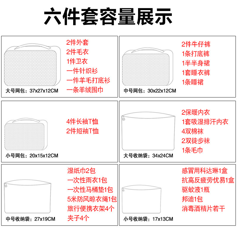 旅行收纳袋套装行李箱必备衣物整理袋特大号内衣加厚化妆包分装袋