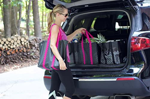 EXTRA LONG HANDLES - 19 inch reinforced nylon webbing handles - carry multiple bags at once.