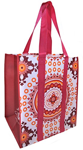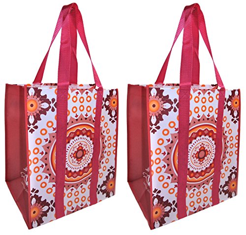 Reusable Grocery Shopping Bags - Premium Heavy Duty Wipe-clean Totes (2, coral medallion)