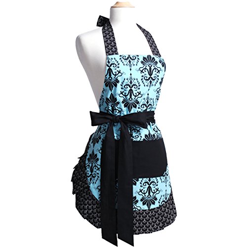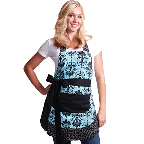 Flirty Aprons Women's Original Apron, Aqua Damask