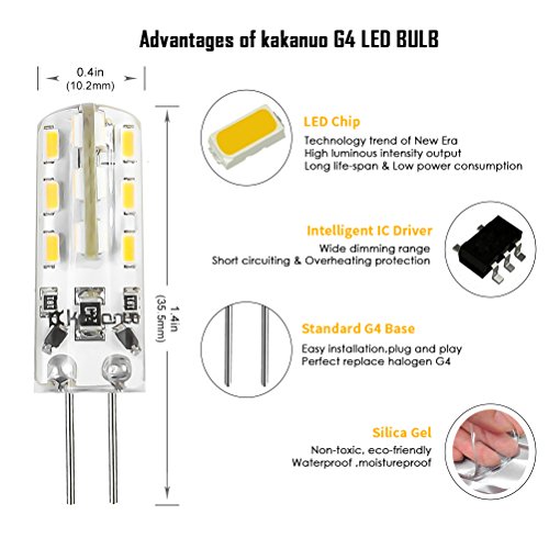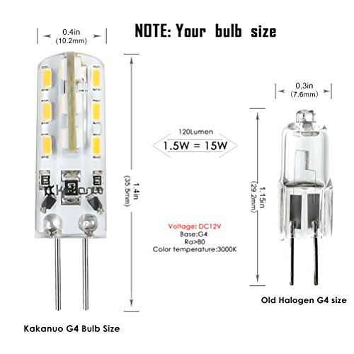 G4 LED Bulb 15W Halogen Replacement Bulb Kakanuo 1.5W DC12V G4 Bi-pin Base Warm White 3000K G4 Bulb 24x3014SMD LED Bulb Non-dimmable (Pack of 10)