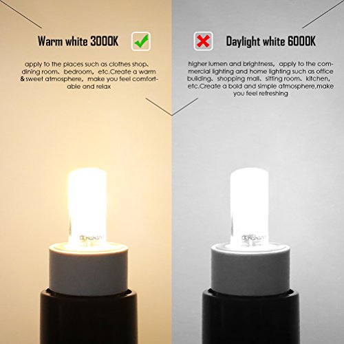 - 【Easy installation】Mini Size: Dia0.4inch*L1.4inch .You can replace the old G4 halogen bulbs by this Standard G4 Bi-pin base in a few seconds.Fit for most of the facility with G4 socket