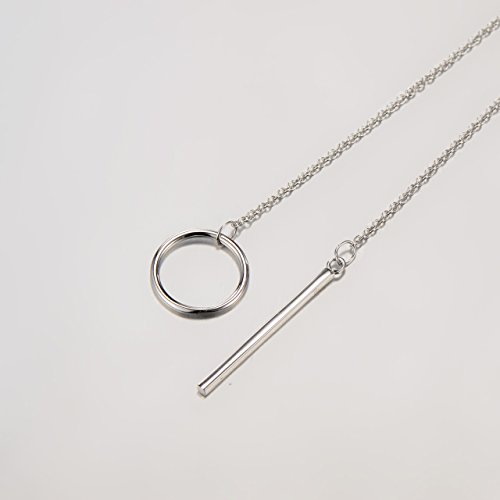 -. Title : Sterling Silver Lariat Bar Necklace Open Circle Y Necklace Vertical Bar Looped Long Necklace 30" - 3 Finishes Available