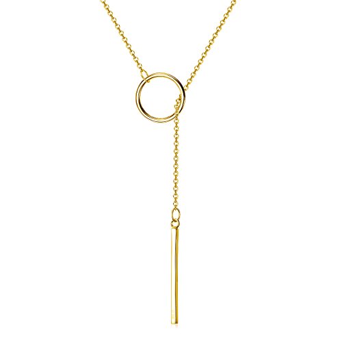 -. Feature : DESIGN: This classic Y-shaped lariat necklace features a bar pendant looped through an open ring. It has a beautful highly polished finished and is very flattering. / MEASUREMENTS: The necklace is approximately 30" long including the pendant. The bar is approximately 1" / QUALITY: Guaranteed .925 Sterling Silver. This is not the fake stuff that will irritate your skin or turn colors after a few weeks of wear! / FINISH: Crafted in either yellow gold, rose gold or rhodium over 925 sterling silver. Rhodium is a precious metal similar in appearance to white gold and does not tarnish or oxidize. Stamped with 925 to ensure authenticity. / LUXE PACKAGING: Give a meaningful gift for birthdays, Christmas, graduation, Easter, or any other holiday with a premium sterling silver earrings and beautiful gift box package.