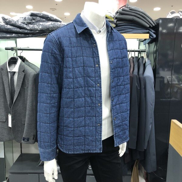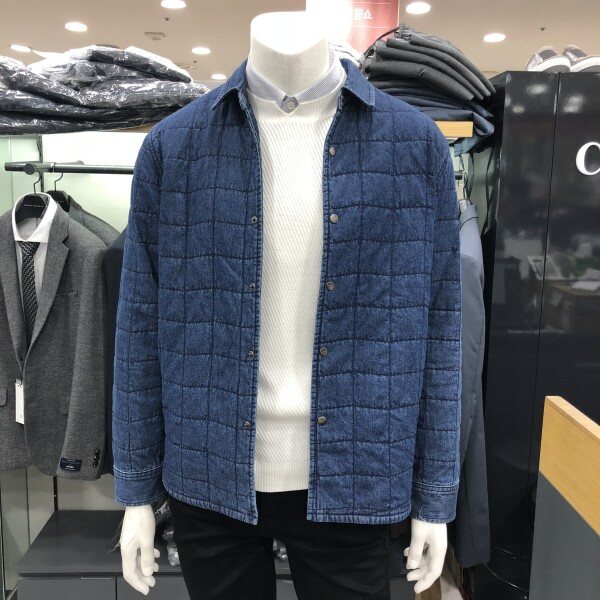 간절기에는 아우터로 추운겨울엔 이너로 입을수 있는 활용도가 높은 패딩솜을 넣어 퀼팅처리한 데님 셔츠형 자켓입니다 셔츠나 맨투맨이랑 레이어드 가능합니다 데님팬츠나 슬랙스와 무난하게 코디할수 있습니다