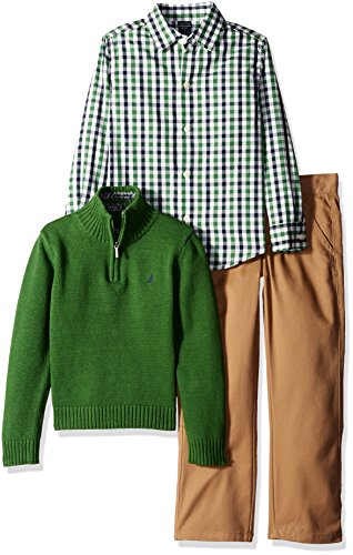 Nautica Little Boys Three Piece Set with Shirt Quarter Zip Sweater Flat Front Twill, Green, Medium/5/6