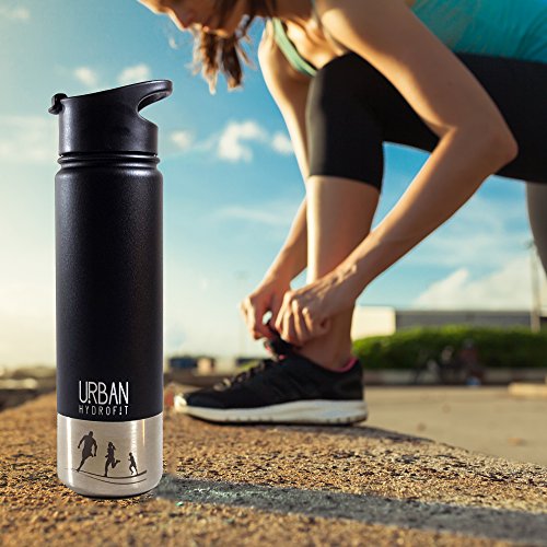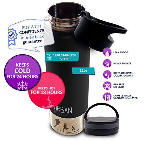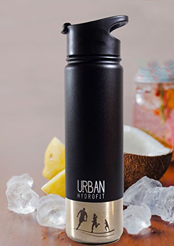● ● THE BEST CONSTRUCTION: The sleek-looking URBAN HYDROFIT 22 OUNCE INSULATED Water Bottle is double walled vacuum insulated, keeping drinks cold for up to 24 hours or warm for 18 hours (piping hot for 6 hours); no abrupt temperature change is on the outside of the container while it keeps fluids ultra hot or cold inside; the bottle is sweat-free, so your hands stay dry; keep hydrated at home, work, or play, indoors or outdoors, as it holds hot and cold liquids for a long time;