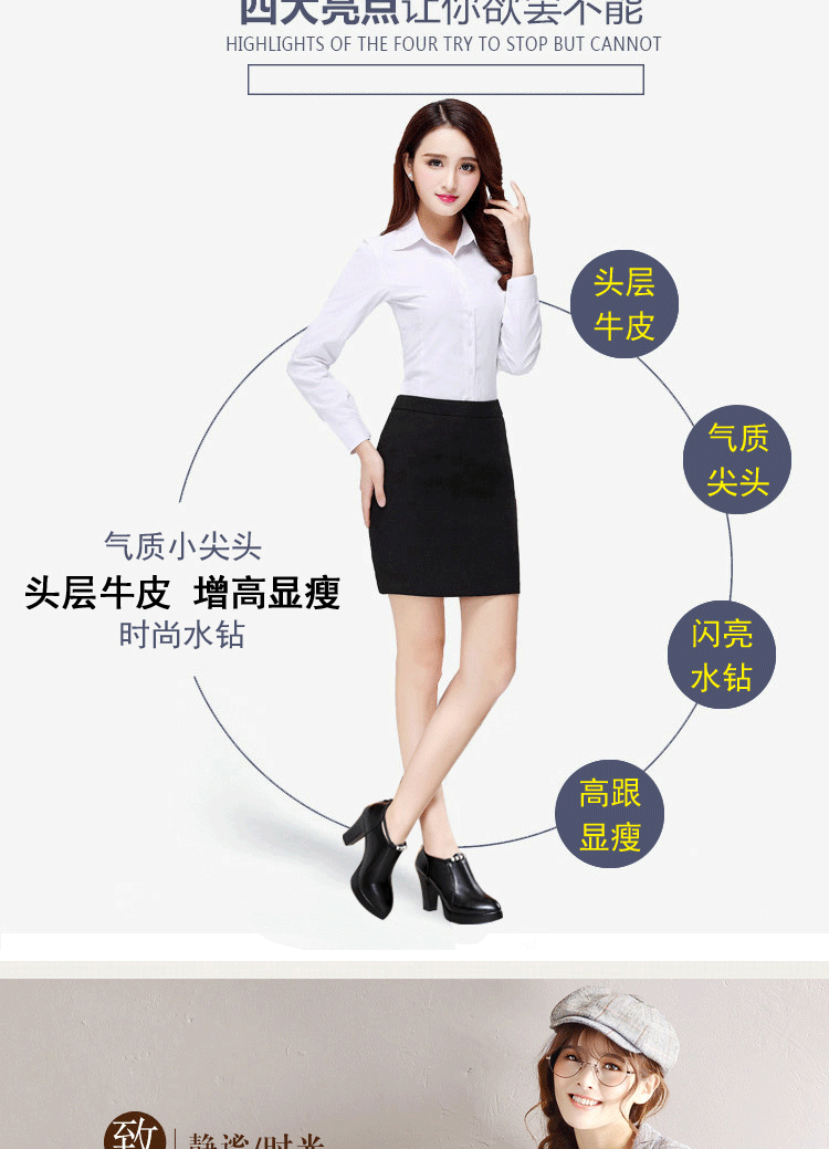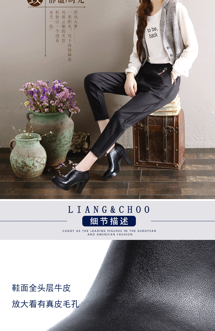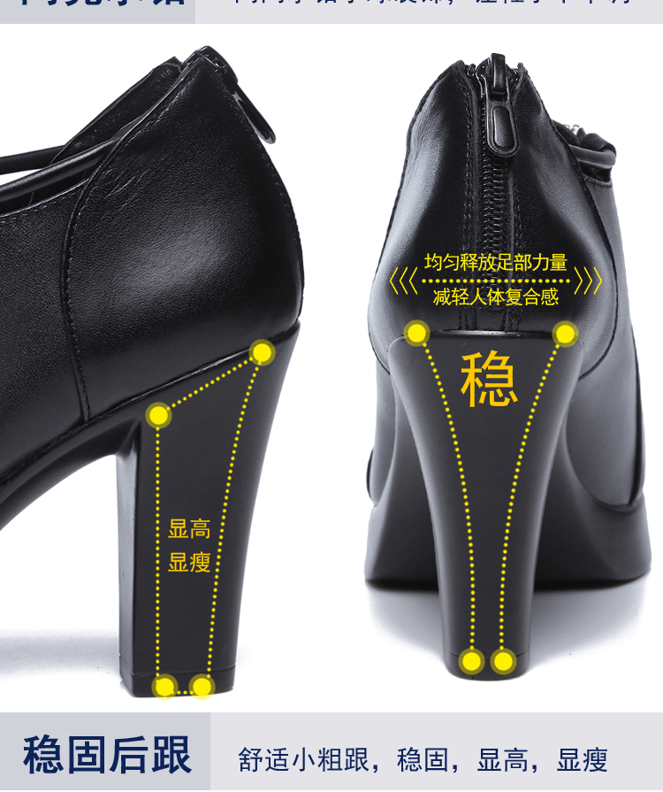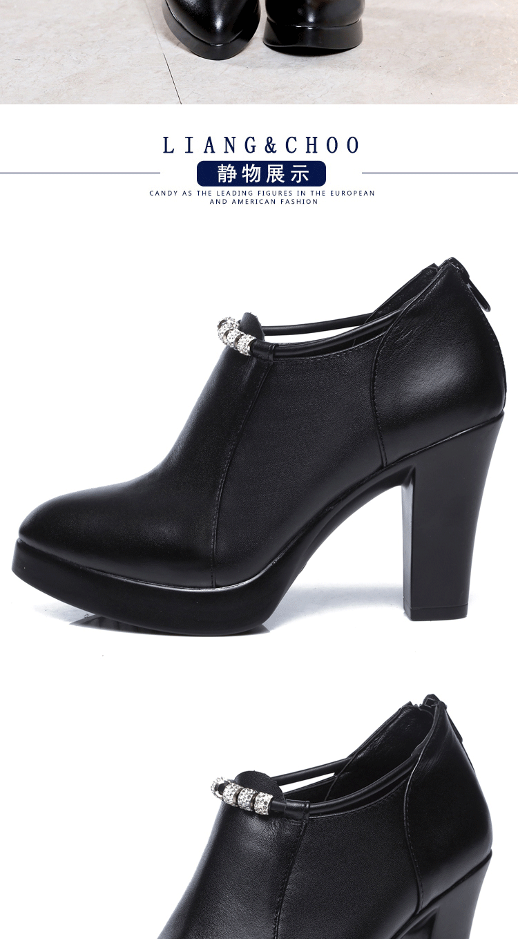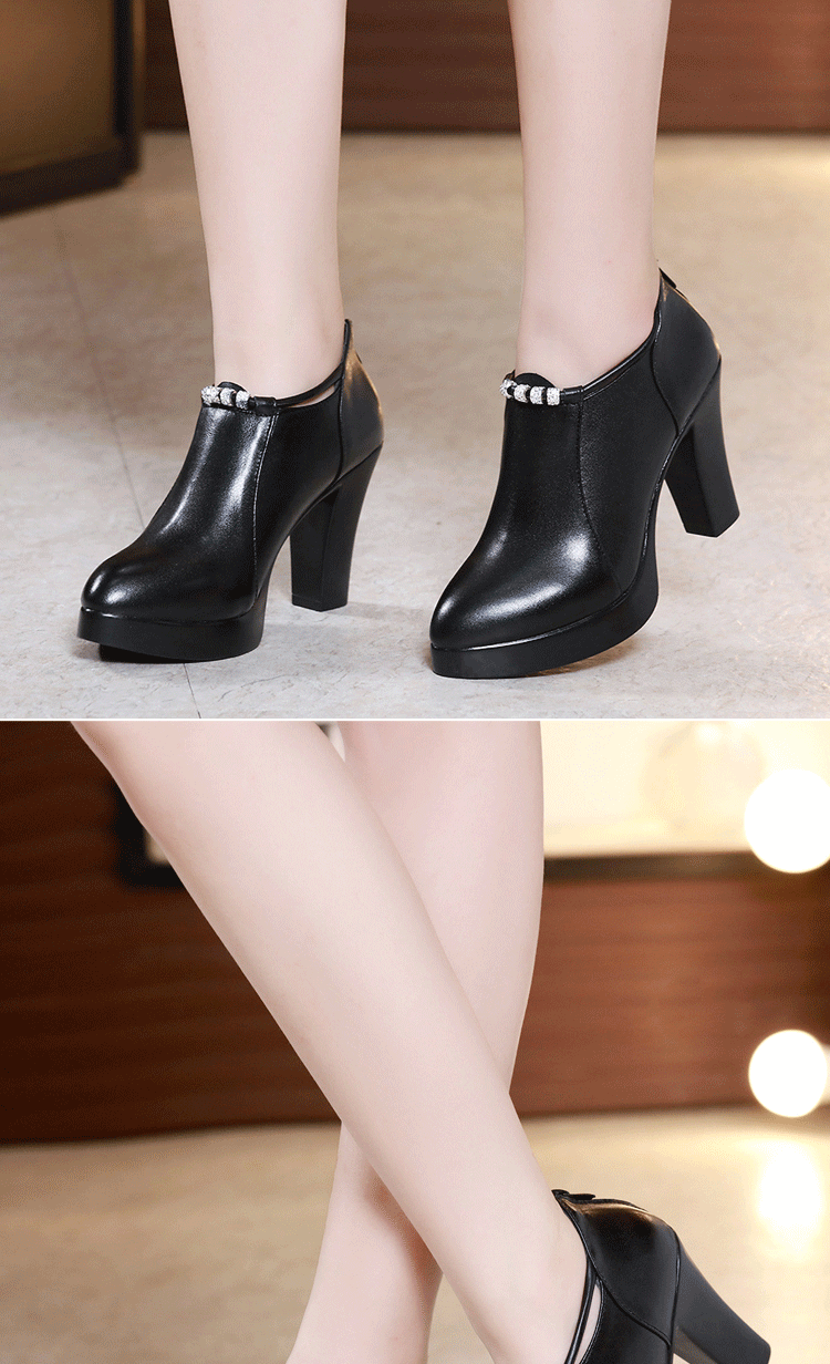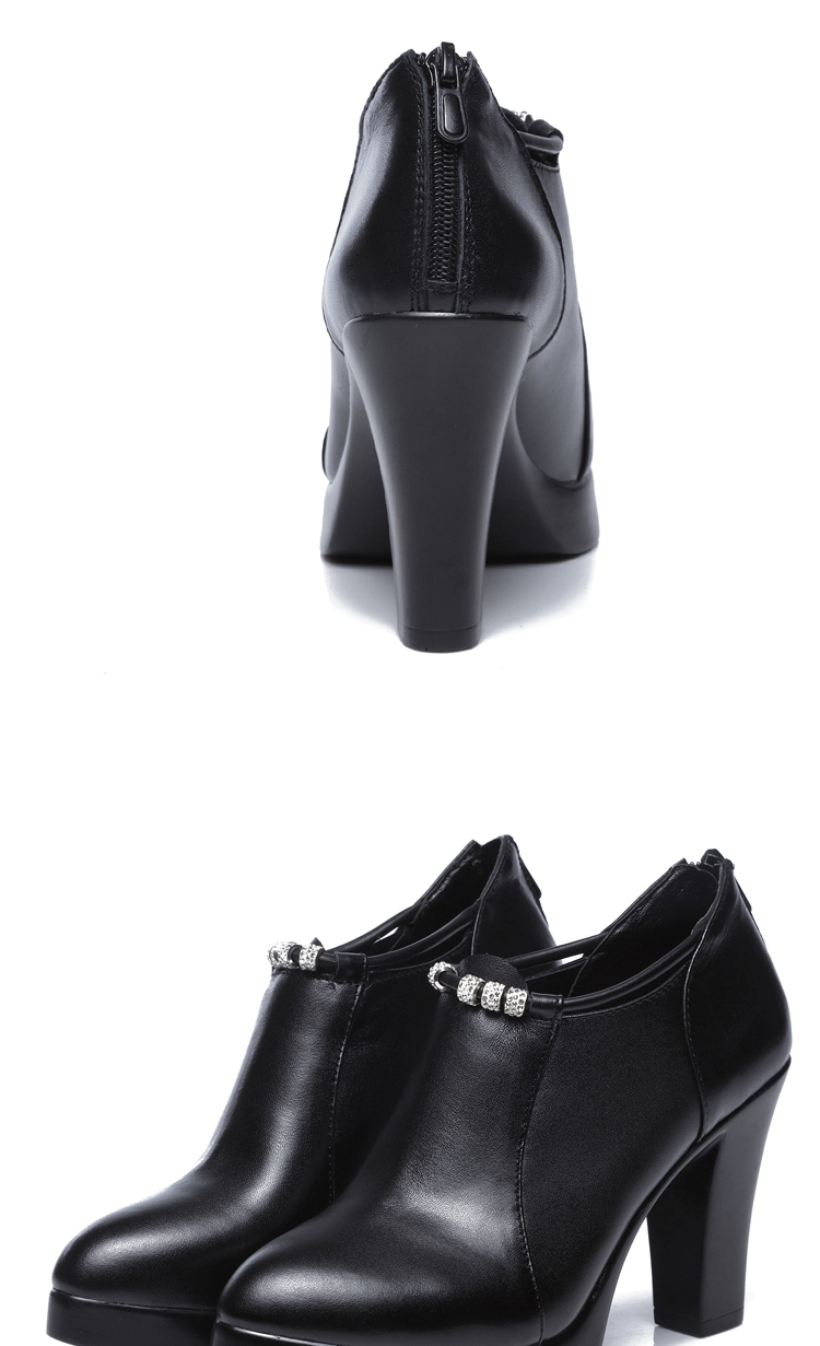 头层牛皮单鞋尖头韩版走秀工作女鞋高跟防水台拉链水钻真皮绒棉鞋