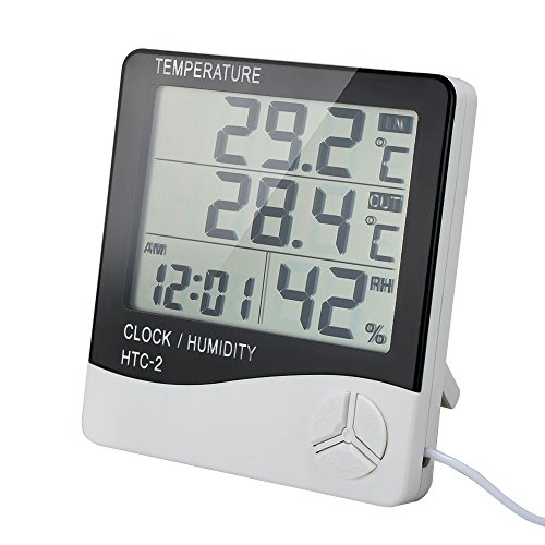Digital Hygrometer Indoor Humidity Meter and Temperature Monitor Thermometer Accurate Readings with Large LCD Digital Display and Alarm Clock