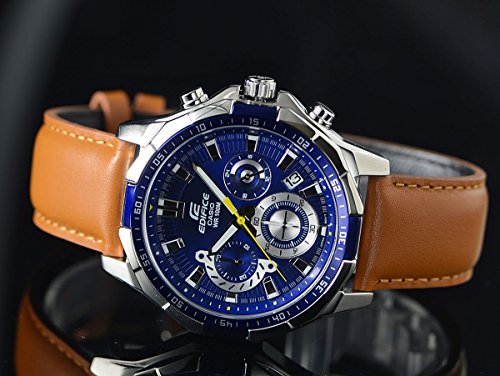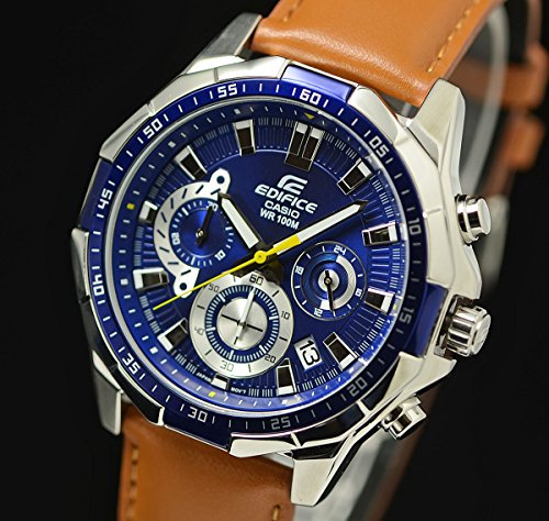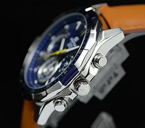 -. Feature : ●CASIO~EDIFICE ●新品未使用 ●クオーツム-ブメント / ●クロノグラフ ●デイトカレンダー ●100m(10気圧)防水 / ●ステンレス製本体 ●本革ストラップ ●本体サイズ直径約44mm×厚さ約12mm(リューズ・べゼル含まず) ●ラグ幅約22mm●重量約85g