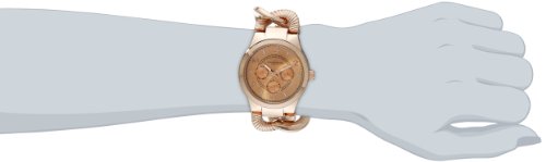 -. Feature : Multifunction features include day, date, and GMT (24 hour) sub dials / Rose-tone case and twist chain link bracelet / Luminescent hands and hour markers / Precise quartz multifunction movement / Water-resistant to 10 M (33 feet) / Multifunction features include day, date, and GMT (24 hour) sub dials / Rose-tone case and twist chain link bracelet / Luminescent hands and hour markers / Precise quartz multifunction movement / Not water resistant