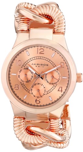 -. Title : Akribos XXIV Women's AK721RG Ultimate Multifunction Rose-tone Twist Chain Bracelet Watch