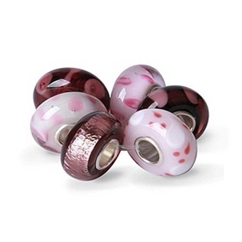 - Feature : Six Assorted Rose Color Glass Beads / Various Patterns / Murano Glass Bead / Pandora, Biagi, Chamilia and Troll Bead Compatible / .925 Sterling Silver Bead Core