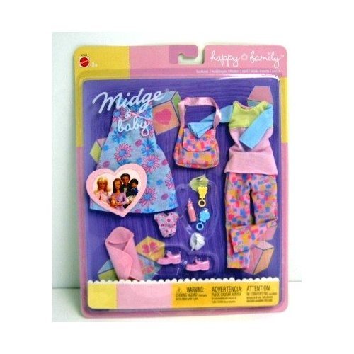 - Contains 2 outfits for Midge and one for baby