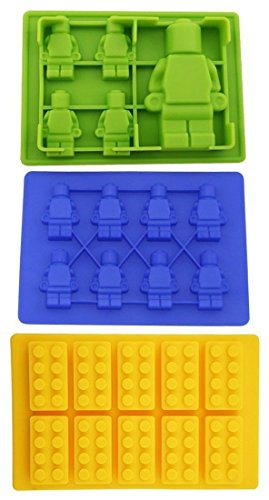 Youdepot Yellow Building Brick & Blue & Green Multi-size Minifigure Silicone Ice Tray Candy Mold Set (Blue/Green/Yellow, 1)