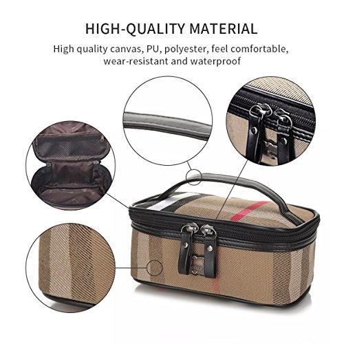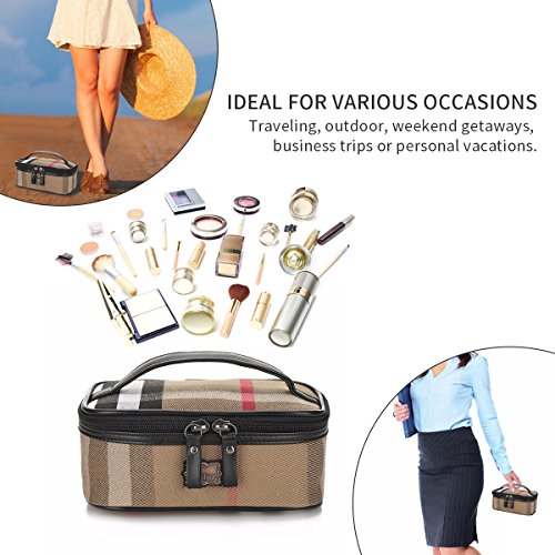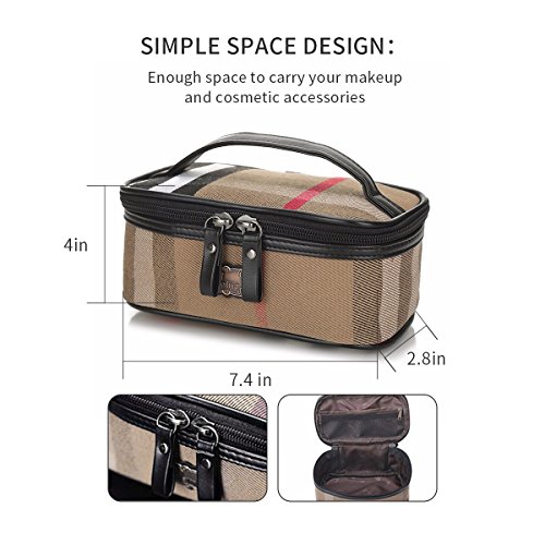 Travel Makeup Bag Cosmetic Case Organizer Bag for Women Cosmetics Makeup Brushes Toiletry Jewelry, Portable Mini Makeup Train Case (brown)