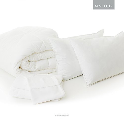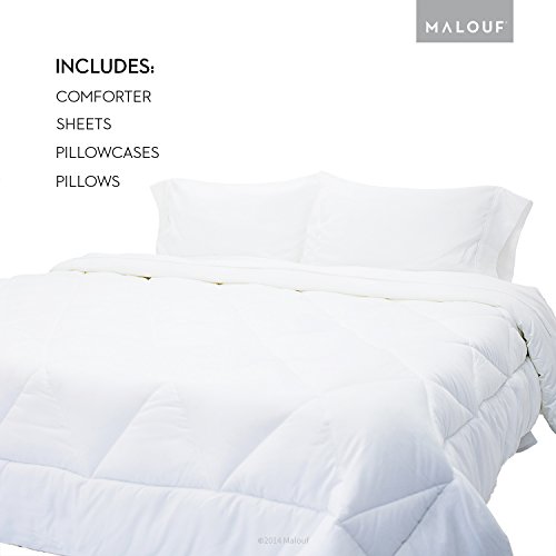- Feature : All in one bedding kit includes 1 down alternative comforter, 1 fitted sheet, 1 flat sheet, 1 pillowcase, and 1 pillow / Reversible down alternative comforter is box stitched for consistent loft and breathability / Ultra-soft brushed microfiber sheets are wrinkle and stain resistant; sheet set is white / Deep pocket sheets accommodate mattress depths from 6 to 18 inches / Down alternative pillow offers the luxurious feel of down without odors, allergens or sharp quills