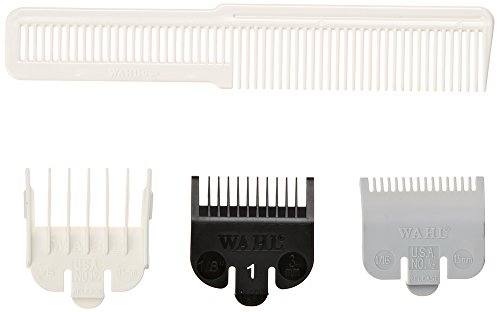 -. Feature : Includes cutting comb to maintain a 1/8 inch cut, / white styling comb, red blade guard / Oil, cleaning brush and operating instructions